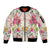 Pink Hawaiian Quilt Sleeve Zip Bomber Jacket Hawaii Pineapple Monstera Palaka Motifs LT14