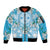 Hawaii Cyan Palaka Bomber Jacket With Tapa Pattern Tropical Flowers LT05