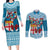 Fiji Marau na Kerisimasi Couples Matching Long Sleeve Bodycon Dress and Long Sleeve Button Shirt Christmas Collared Lory - Fiji Emblems and Xmas Palm Tree Tapa Art Pattern LT03