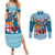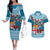 Fiji Marau na Kerisimasi Couples Matching Off The Shoulder Long Sleeve Dress and Long Sleeve Button Shirt Christmas Collared Lory - Fiji Emblems and Xmas Palm Tree Tapa Art Pattern LT03