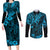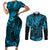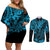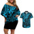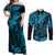 Hawaii King Kamehameha Couples Matching Off The Shoulder Long Sleeve Dress and Hawaiian Shirt Polynesian Pattern Sky Blue Version LT01