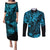 Hawaii King Kamehameha Couples Matching Off Shoulder Maxi Dress and Long Sleeve Button Shirts Polynesian Pattern Sky Blue Version LT01
