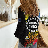 Cook Islands Independence Day Women Casual Shirt Maroro and Kakaia with Hibiscus Flower Polynesian Pattern LT03