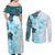 Fiji Couples Matching Off Shoulder Maxi Dress and Long Sleeve Button Shirt Masi Tapa Pattern Blue LT05