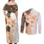 Fiji Couples Matching Off Shoulder Maxi Dress and Long Sleeve Button Shirt Masi Tapa Pattern Brown