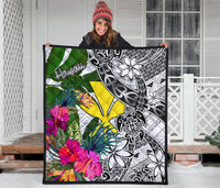 Placeholder Hawaii Premium Quilt White - Turtle Plumeria Banana Leaf - Polynesian Pride