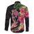 Hawaiian Tropical Plants Turtle and Shark Family Matching Off The Shoulder Long Sleeve Dress and Hawaiian Shirt Polynesian Art Tattoo LT03