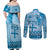 Vintage Bula Fiji Personalised Couples Matching Off Shoulder Maxi Dress and Long Sleeve Button Shirt Blue Hibiscus Tapa Pattern LT9