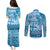 Vintage Bula Fiji Personalised Couples Matching Puletasi and Long Sleeve Button Shirt Blue Hibiscus Tapa Pattern LT9