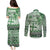 Vintage Bula Fiji Personalised Couples Matching Puletasi and Long Sleeve Button Shirt Green Hibiscus Tapa Pattern LT9