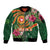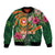 Personalised Manuʻa Islands Sleeve Zip Bomber Jacket Polynesian Art Tattoo Style and Tropical Plants LT03