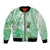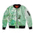Aotearoa Maori Wahine Sleeve Zip Bomber Jacket Fantail Bird Green Gold Marble LT05