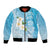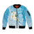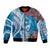 Aotearoa Maori Wahine Sleeve Zip Bomber Jacket Fantail Bird Blue Gold Marble LT05