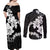 American Samoa Lotu Tamaiti Couples Matching Off Shoulder Maxi Dress and Long Sleeve Button Shirt White Sunday Plumeria Black Vibe LT9