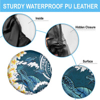 Dark Teal Polynesia Spare Tire Cover Polynesian Frangipani With Sea Turtles LT14