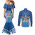 Fiji Day Couples Matching Mermaid Dress and Long Sleeve Button Shirt Fijian Masi Tribal Hibiscus Tattoo and Tapa Pattern LT03
