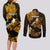 Hawaii Maui Couples Matching Long Sleeve Bodycon Dress and Long Sleeve Button Shirts Polynesian Fish Hook Hibiscus Gold Version
