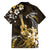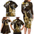 Hawaii Ukulele Family Matching Long Sleeve Bodycon Dress and Hawaiian Shirt Polynesian Pattern Mix Hibiscus Gold Version