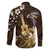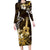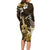 Hawaii Ukulele Family Matching Long Sleeve Bodycon Dress and Hawaiian Shirt Polynesian Pattern Mix Hibiscus Gold Version LT05