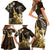 Hawaii Ukulele Family Matching Short Sleeve Bodycon Dress and Hawaiian Shirt Polynesian Pattern Mix Hibiscus Gold Version LT05