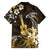 Hawaii Ukulele Family Matching Short Sleeve Bodycon Dress and Hawaiian Shirt Polynesian Pattern Mix Hibiscus Gold Version