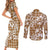 Placeholder Hibiscus Pakala Bronze Brown Couples Matching Short Sleeve Bodycon Dress and Long Sleeve Button Shirt Tropical Floral Stylized - Polynesian Pride