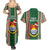 Kiribati Christmas Couples Matching Summer Maxi Dress and Hawaiian Shirt Santa With Gift Bag Behind Ribbons Seamless Green Maori