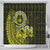 Lime Green Talofa Samoa Shower Curtain Samoan Kava Bowl Siapo Pattern