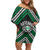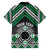 Personalised Aotearoa Niho Taniwha Motif Family Matching Off Shoulder Short Dress and Hawaiian Shirt Green Style