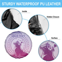 Personalised Hawaii Monk Seal Spare Tire Cover Polynesian Tattoo With Tropical Flowers - Purple Gradient