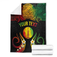 Personalised New Caledonia Independence Day Blanket Polynesian Tattoo and Plumeria Reggae Color