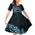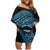 Personalised Pohnpei Nukuoro Micronesia Family Matching Off Shoulder Short Dress and Hawaiian Shirt Polynesian Tattoo Curves Blue Version