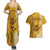 Personalised Strong Maui Couples Matching Summer Maxi Dress and Hawaiian Shirt Good Living Hawaii with Shaka Sign Kakau Tribal Gold