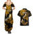 Personalized Hawaii Maui Couples Matching Summer Maxi Dress and Hawaiian Shirt Polynesian Fish Hook Hibiscus Gold Version LT05