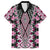 Pink Aotearoa Tukutuku and Poutama Motif Family Matching Off Shoulder Short Dress and Hawaiian Shirt