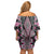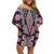 Pink Aotearoa Tukutuku and Poutama Motif Family Matching Off Shoulder Short Dress and Hawaiian Shirt LT03