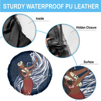 Tahiti Islands Polynesian Plumeria Spare Tire Cover Tahitian Vahine 'Ote'a - Navy Blue