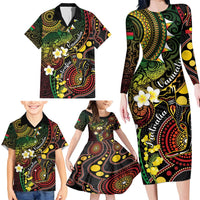 Vanuatu And Australia Aboriginal Family Matching Long Sleeve Bodycon Dress and Hawaiian Shirt Iguana And Kangaroo Together LT05